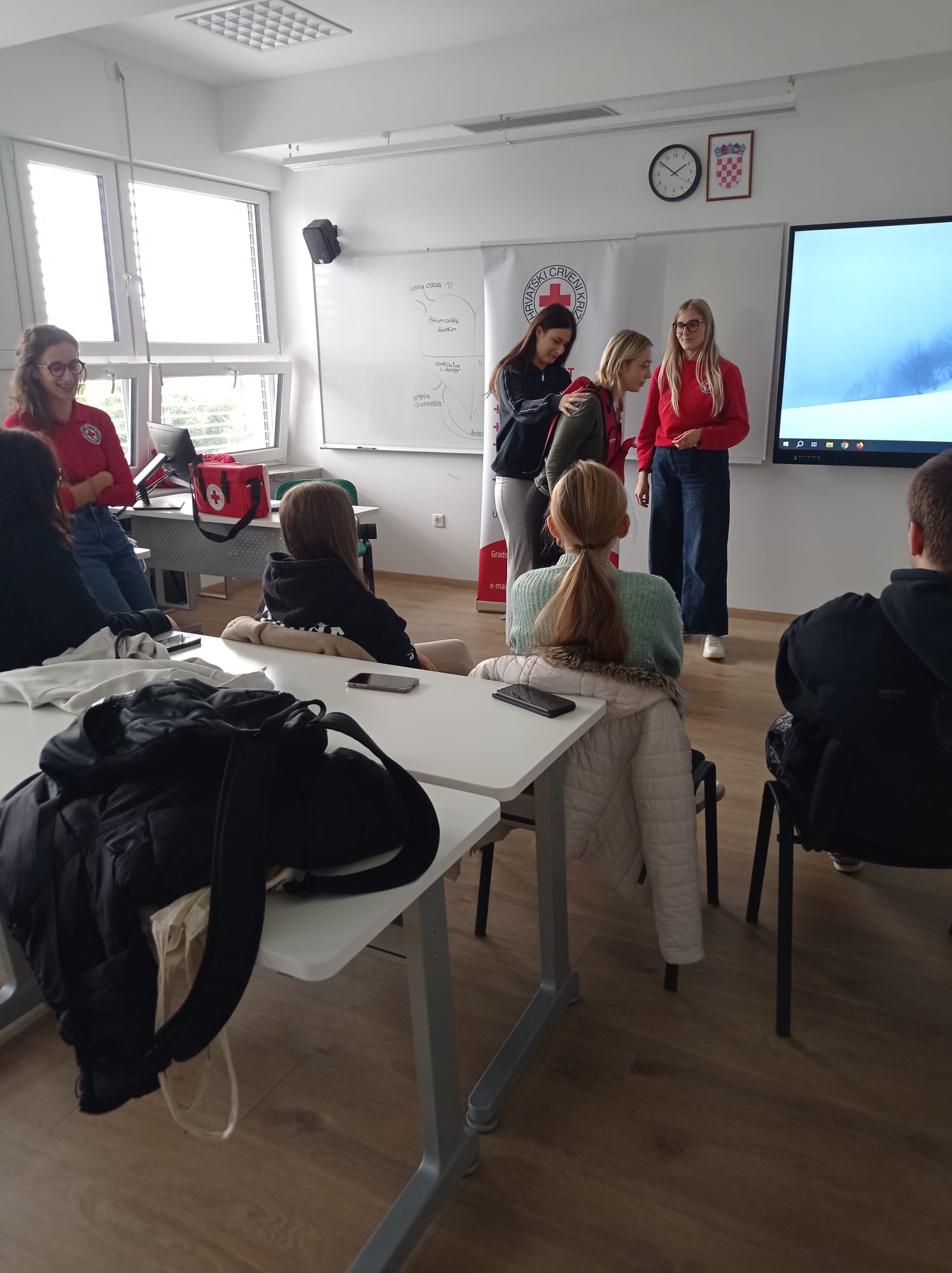 13. 10. učenici 4. c razreda, u suradnji s Gradskim društvom Crvenog križa Petrinja, sudjelovali su u obilježavanju Svjetskog dana smanjenja rizika od katastrofe. Tema radionice bilo je pružanje prve pomoći. Učenici su vrlo pozorno slušali djelatnice Crvenog križa Anju i Magdalenu dok su objašnjavale kako pravovremeno i pravilno reagirati u hitnim situacijama. Također, svi su se okušali u praktičnom dijelu radionice pa su zbrinjavali onesviještenu osobu, naučili kako pomoći prilikom gušenja osobe te prošli postupak reanimacije. Radionica je bila vrlo poticajna i zanimljiva.