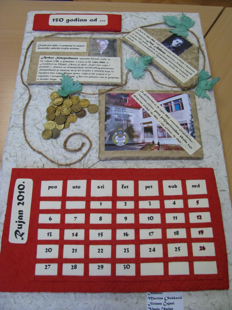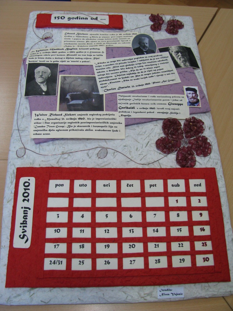 Unatoč svojoj kratkoći, ovogodišnja gospođica Veljača (nije riječ o glumici, nego samo podsjetnik da je riječ o jedinom mjesecu u godini ženskoga roda:) donijela nam je puno obaveza, ali još više radosti. Pravo slavljeničko lice pokazala je svojega 5. dana u kojemu smo obilježili Dan škole i 150. obljetnicu Male realke u Petrinji. Različitim aktivnostima, programima i projektima na kojima smo marljivo radili željeli smo tom danu dati poseban značaj. Svečana priredba u Hrvatskome domu, Spomenak, kalendar 150 godina od..., školski bilten, miniglosar petrinjskih germanizama, otvorenje vrijedne etnozbirke, degustacije školskih proizvoda, panoi uređeni različitim sadržajima... samo su neki od njih.