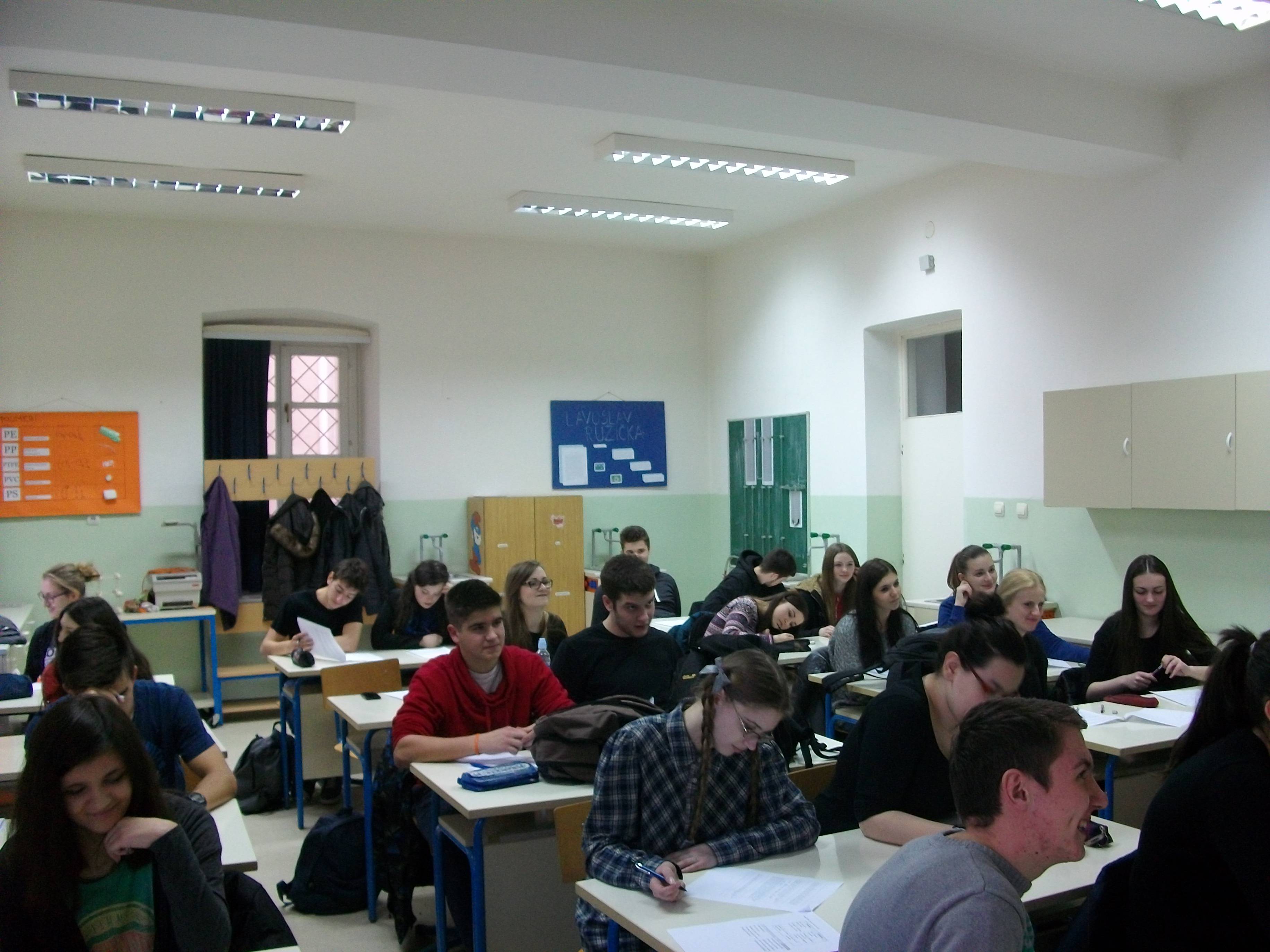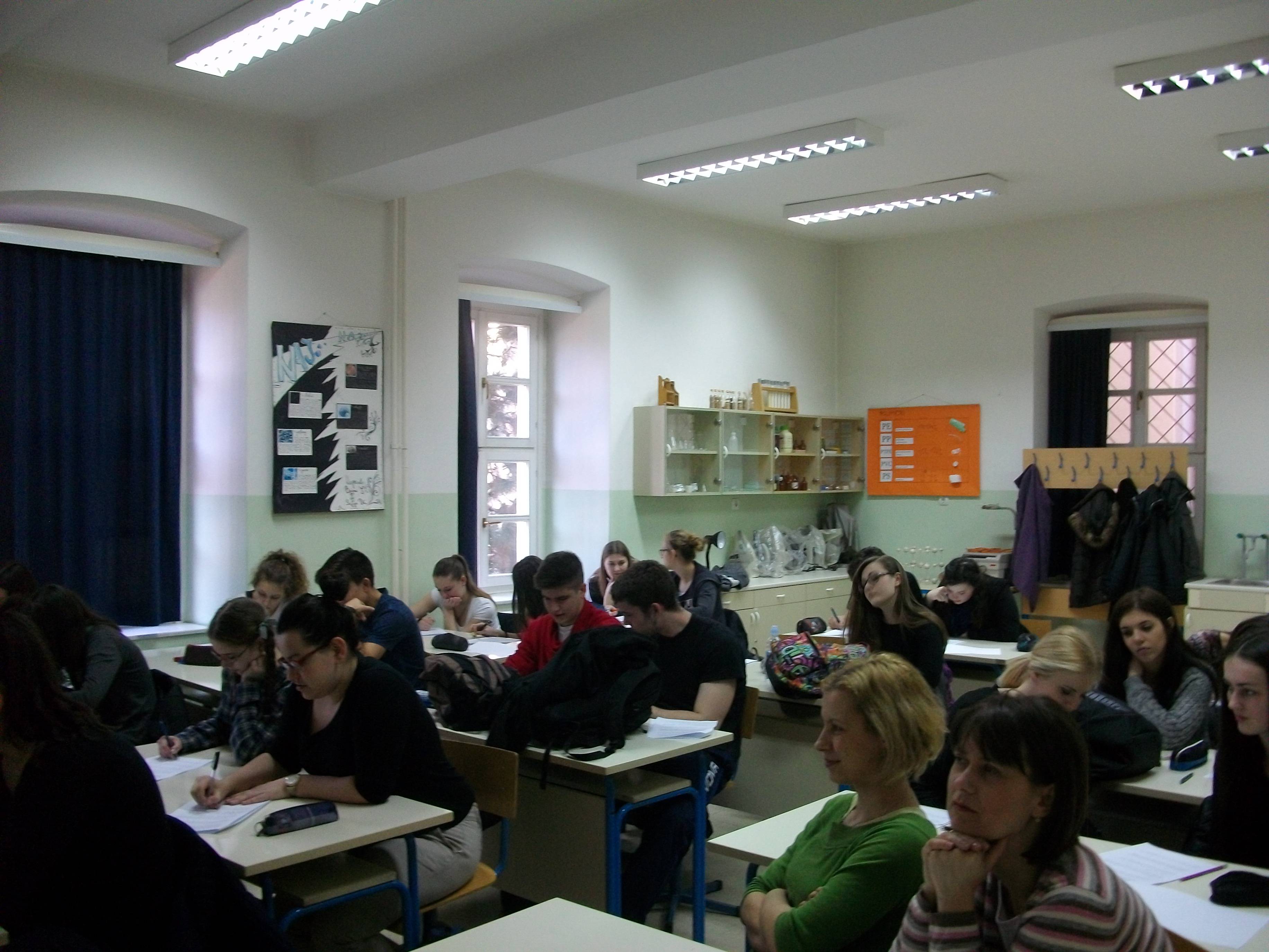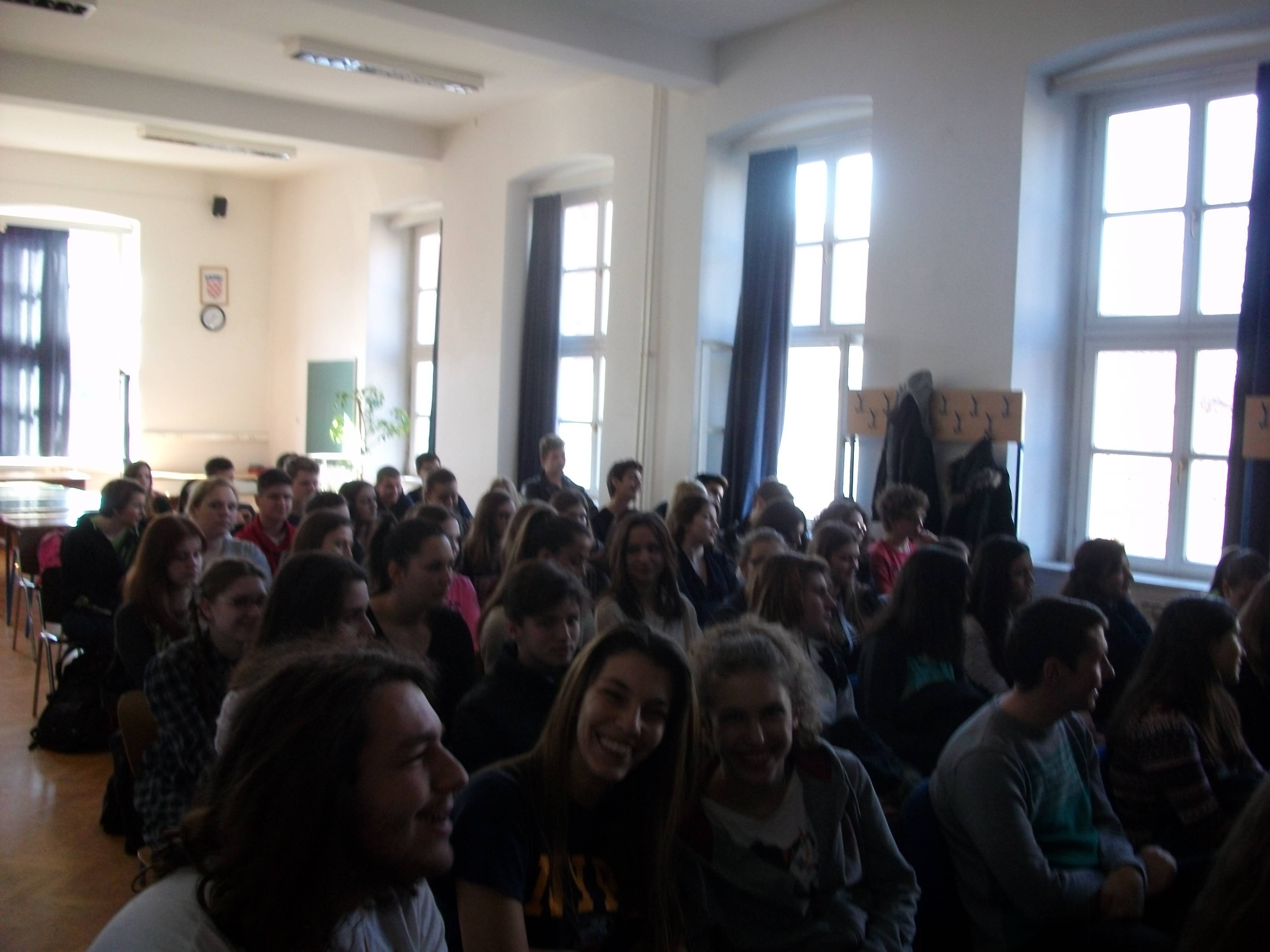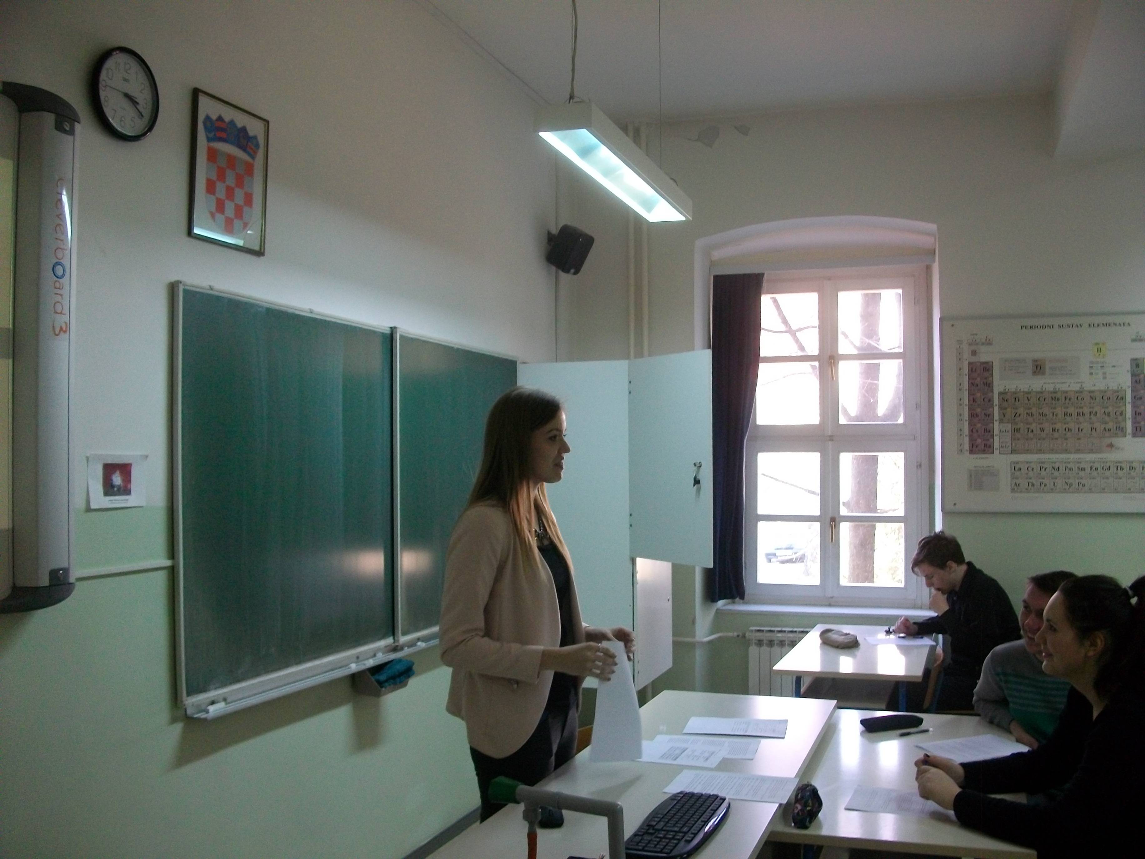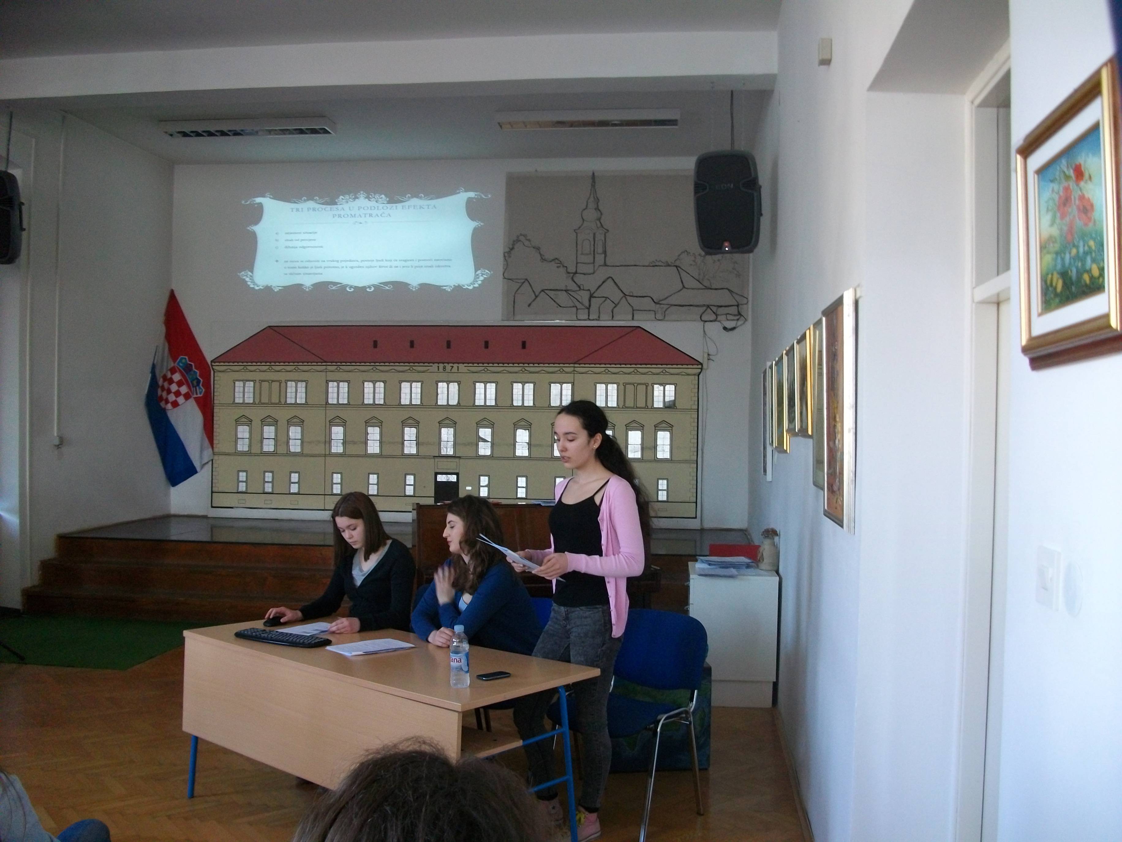 U četvrtak, 19.2.2015. učenici dodatne nastave psihologije i profesorica Ivana Vuić održali su predavanje i prezentaciju istraživanja za učenike i nastavnike na temu „Efekt promatrača“.