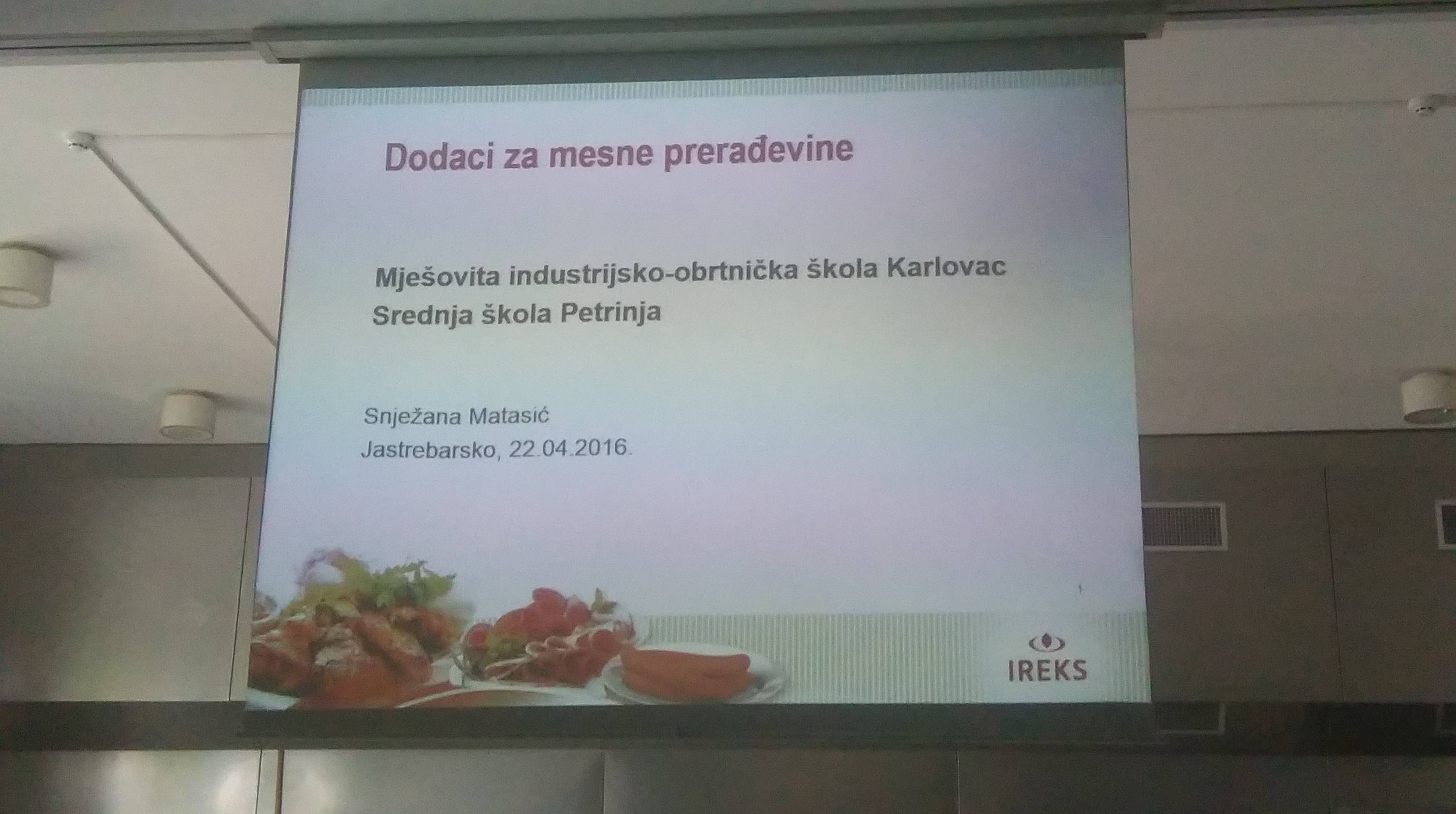 Učenici 3.e Srednje škole Petrinja su 22.4.2016. boravili u stručnom posjetu u Ireks aromi, tvornici čija je djelatnost proizvodnja, distribucija i prodaja začinskih smjesa, aditiva i drugih sastojaka za pekarstvo, slastičarsvo, te industriju mesa i piva.