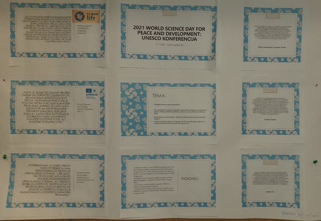 U javnom događanju povodom Svjetskog dana znanosti za mir i razvoj sudjelovale su profesorice: Dubravka Rebić, Jasmina Cvetnić, Šeherzada Šaini Talić, Ljubica Škorić Drndelić, Dragana Jurčević Vukšić, Nikica Grabovac Vujasić i Nataša Kudlek Potkonjak.