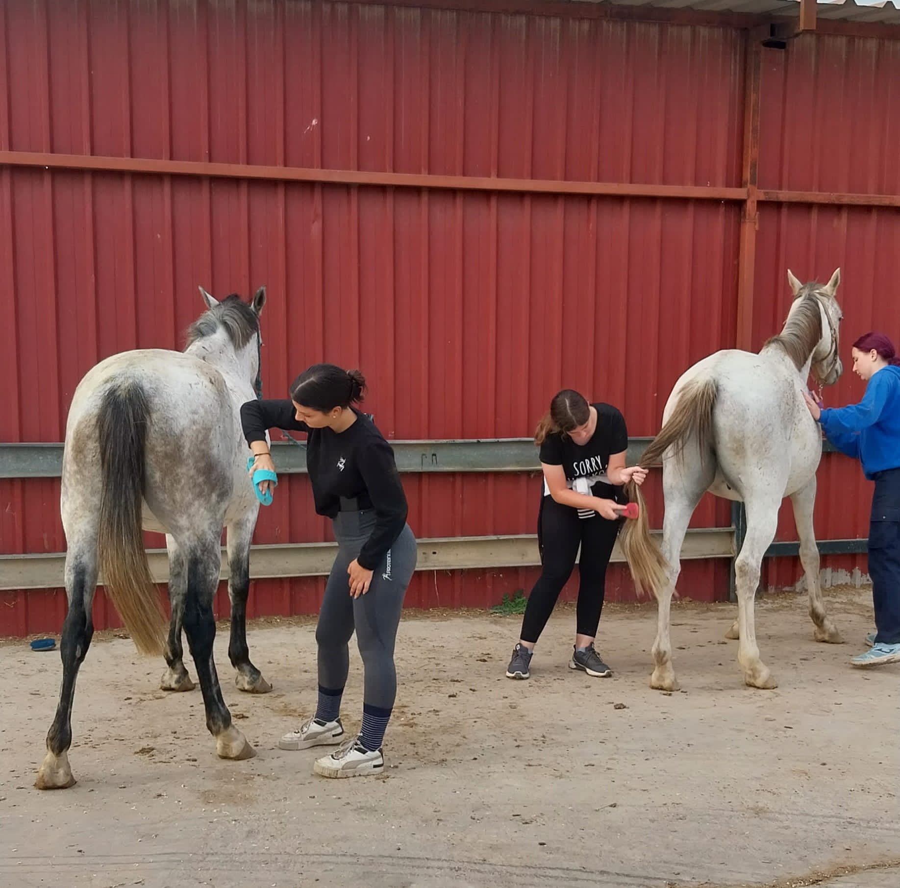 Nastavite li put dalje, oko 9 km od centra Zaragoze, stižete u Pony club Aragon, konjički centar u kojem se može uživati te naučiti sve vezano uz svijet konja i ponija. Ondje rade naše veterinarske tehničarke Daniela Vinčić, Elena Horvačić i Marija Kardaš. Želite li jahati konja u Zaragozi, ovo je pravo mjesto jer nude zaista obilje aktivnosti: poni klub za djecu, školu jahanja za odrasle za više disciplina, kao što su preskakanje, dresura, cross ili seosko hodanje. Održavaju različite tečajeve i nastavu. Imanje je ogromno s preko 100 grla; od najmanjih Shetlandskih ponija, Wellshkih ponija do Andaluzijskog konja i drugih toplokrvnih trkaćih konja. Objekata je puno: štale s boksovima za konje, obori, područje za njegu konja, područje za sedlanje, područje za obradu kopita i potkivanje, krug za istrčavanje, vanjske i unutarnje staze za tečajeve i dresuru, a imaju i kafić i salon za proslave. Danijela, Elena i Marija već su drugi tjedan ovdje te jako dobro znaju što sve treba raditi pa gotovo da im i ne trebaju upute njihovog mentora Nachoa. Četkaju konje, osedlavaju ih, stavljaju orme, vode ih s jednog mjesta na drugo, čiste im kopita na koja su konji jako osjetljivi. Toliko su dobre u tome što rade da im je mentor ukazao povjerenje da skupini djece samostalno objasne i pokažu kao treba raditi s ponijima, kako ih njegovati i ponašati se u njihovom društvu.