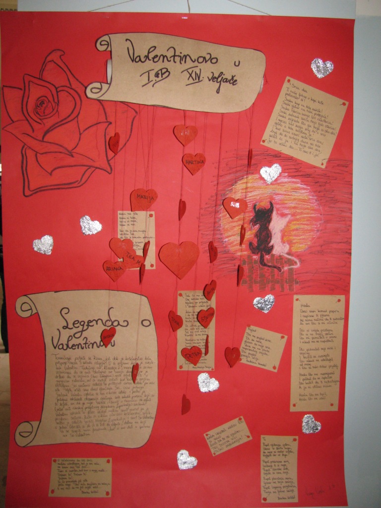 S obzirom na to da je veljača mjesec ljubavi i karnevala, organizirane su i prigodne radionice. Učenici su izradom plakata predstavili svoje viđenje ljubavi, a njezino viđenje senzibilnih pjesničkih duša približena im je instalacijom Ponesi ljubav . Iz postavljenih vrećica svatko je sa sobom mogao ponijeti ljubavni stih ili poruku ljubavi. Naravno, i duh karnevala začarao je našu školu, pa su maske, učenički radovi, izložene na školskom hodniku i u knjižnici, unosile dašak egzotike i zagonetnosti.