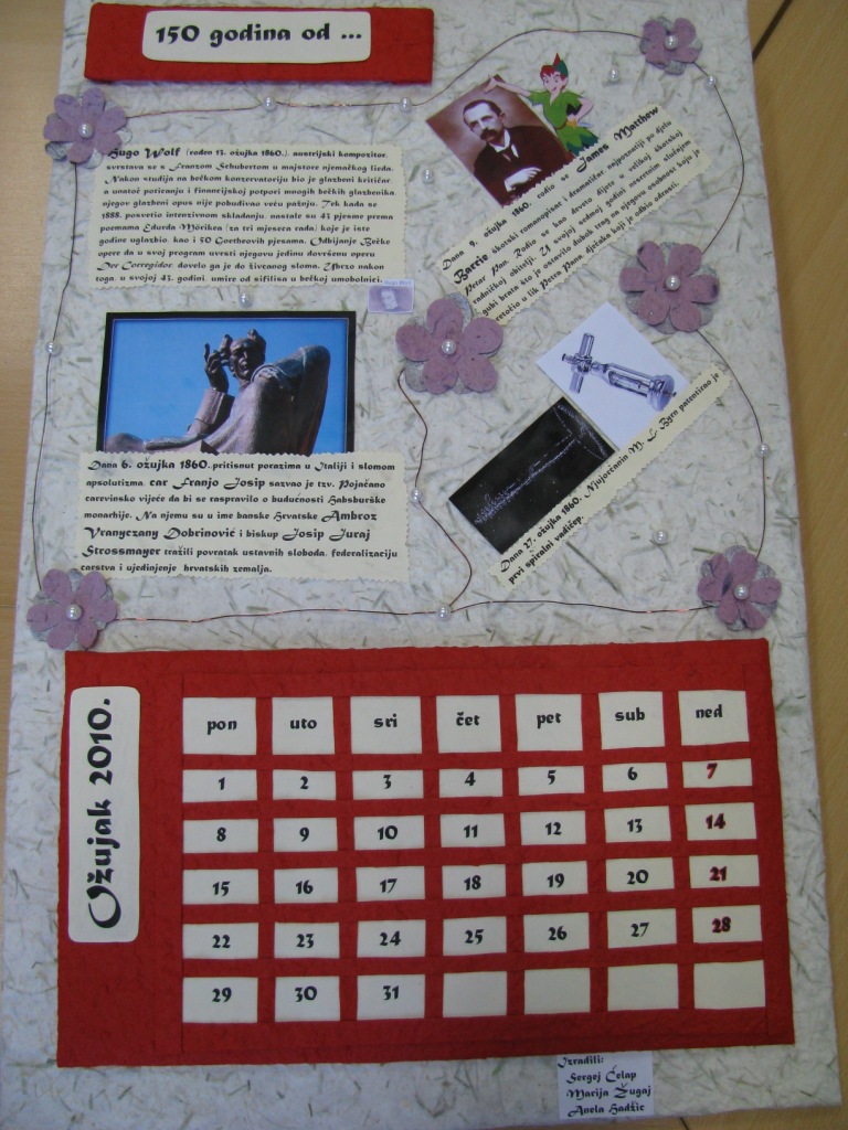 Unatoč svojoj kratkoći, ovogodišnja gospođica Veljača (nije riječ o glumici, nego samo podsjetnik da je riječ o jedinom mjesecu u godini ženskoga roda:) donijela nam je puno obaveza, ali još više radosti. Pravo slavljeničko lice pokazala je svojega 5. dana u kojemu smo obilježili Dan škole i 150. obljetnicu Male realke u Petrinji. Različitim aktivnostima, programima i projektima na kojima smo marljivo radili željeli smo tom danu dati poseban značaj. Svečana priredba u Hrvatskome domu, Spomenak, kalendar 150 godina od..., školski bilten, miniglosar petrinjskih germanizama, otvorenje vrijedne etnozbirke, degustacije školskih proizvoda, panoi uređeni različitim sadržajima... samo su neki od njih.
